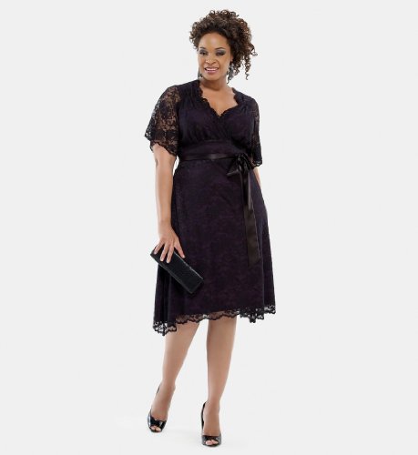 Plus Size Retro Glam Lace Dress with Purple Lining (1x, Black Lace with Purple Lining) Overview